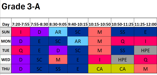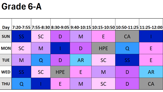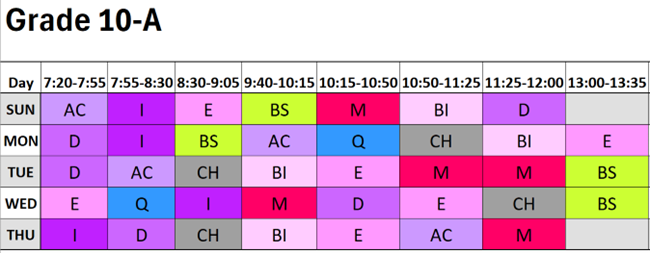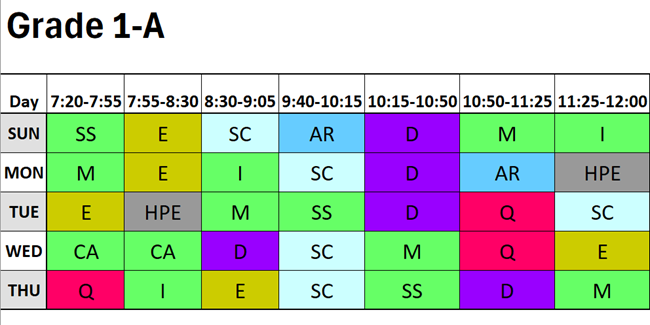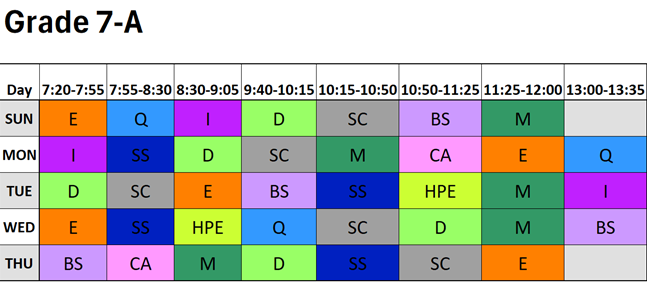 | 06:50 – 09:05 | Periods 1 to 3 | Grade 1 to 10 |