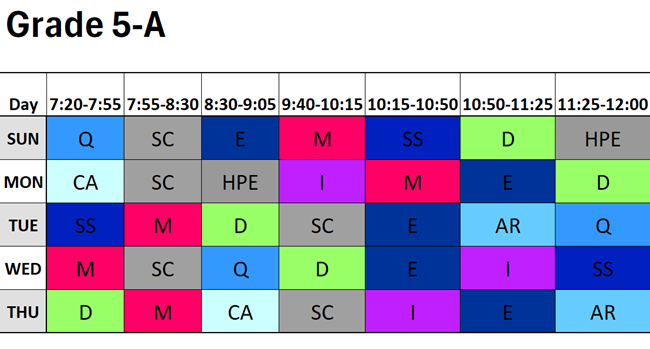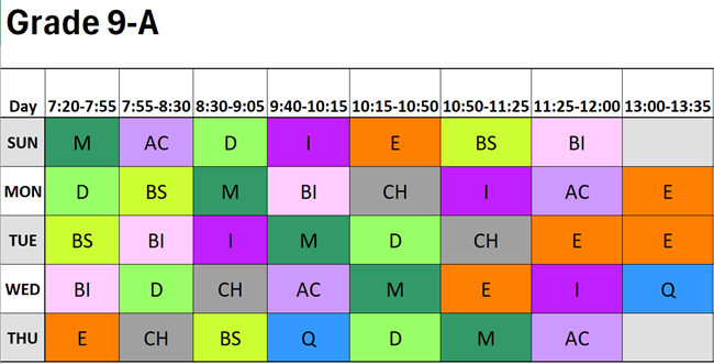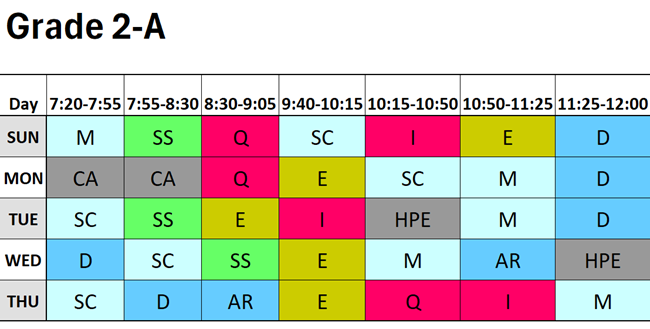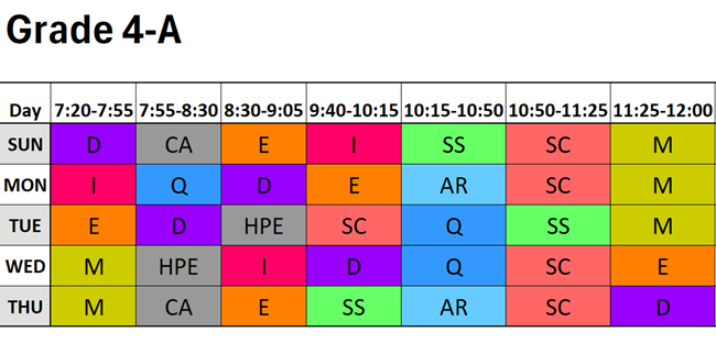 | 09:40 – 12:00 | Periods 4 to 7 | Grade 1 to 10 |