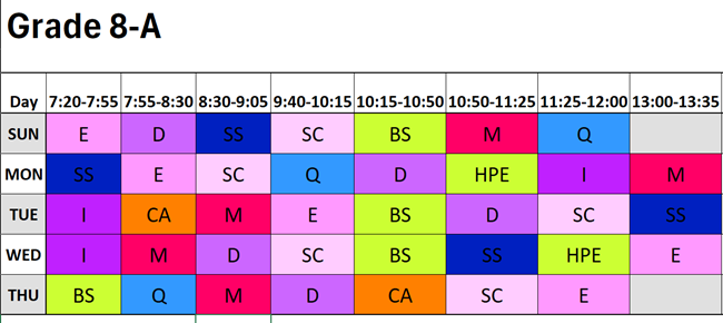 | 13:00 – 14:45 | Period 8 and Extra Classes | Grade 1 to 10 |